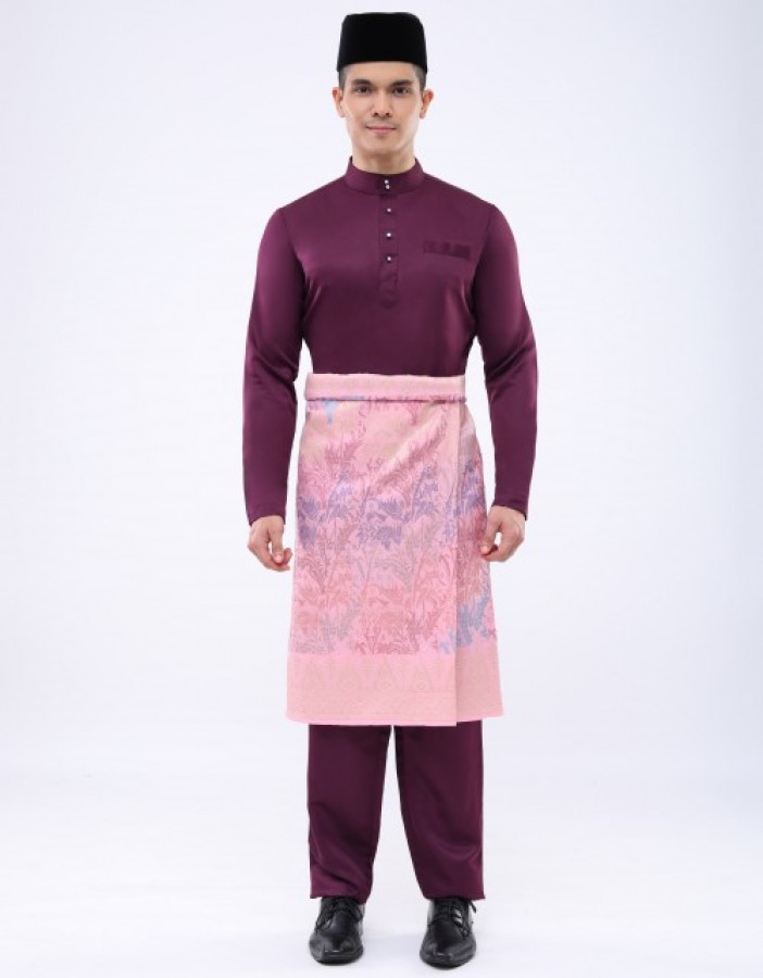 𝗥𝗘𝗔𝗗𝗬 𝗧𝗢 𝗪𝗘𝗔𝗥 [NEW] BAJU MELAYU C/M MODERN FIT NABIL AHMAD IN WINE PURPLE 46 / PACKAGE SAMPIN & BUTTON